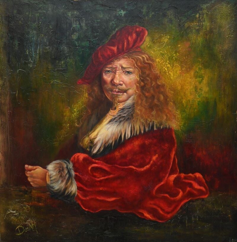 Acrylpainting with epoxy after a drawing by Rembrandt