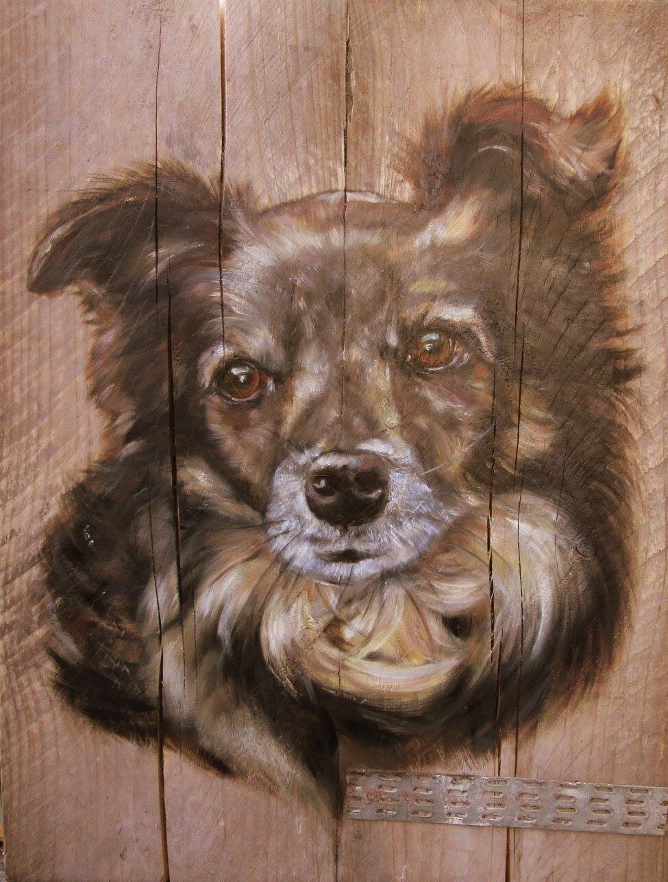 Elk portret maak ik met aandacht, liefde en respect - of het nu op canvas is of op steigerhout. Ik heb nog maar enkele voorbeelden van deze herdenkingsportetten, maar ik schilder al jarenlang dieren met ziel en karakter. Ieder nieuw portret is een eer om te mogen maken.